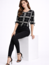 The timeless black and white check pattern adds a versatile and classic appeal to the outfit. The round neckline keeps the design simple and elegant while the stylish three-quarter sleeves with tie-up detailing add a fashionable touch that enhances the overall look.