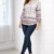 The top features intricate stripe and ethnic print detailing that adds a unique and artistic appeal. The soft V-neckline with front button placket enhances the design while maintaining a relaxed silhouette.