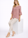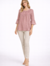 Dusty Pink Embroidered Rayon Flare Top