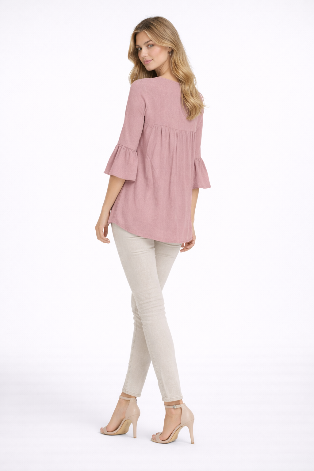 - Sleeves: 3/4 flared sleeves