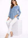 Elegant embroidered rayon peplum top designed with a soft gathered silhouette and feminine everyday style.
