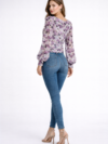 Lavender Abstract Print Chiffon Long Sleeve Top