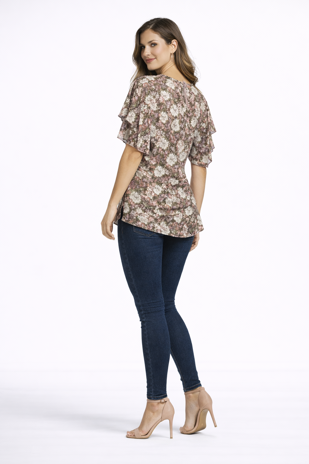 - Design: Floral print with flutter sleeves
