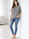 The V-neckline with front detailing creates a flattering silhouette, while the full-length sleeves with elastic cuffs provide subtle volume and comfort. Its relaxed fit ensures ease of movement, making it perfect for both casual wear and office wear.