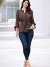 This elegant printed top pairs effortlessly with jeans, trousers, or skirts for stylish casual or semi-formal looks.