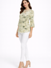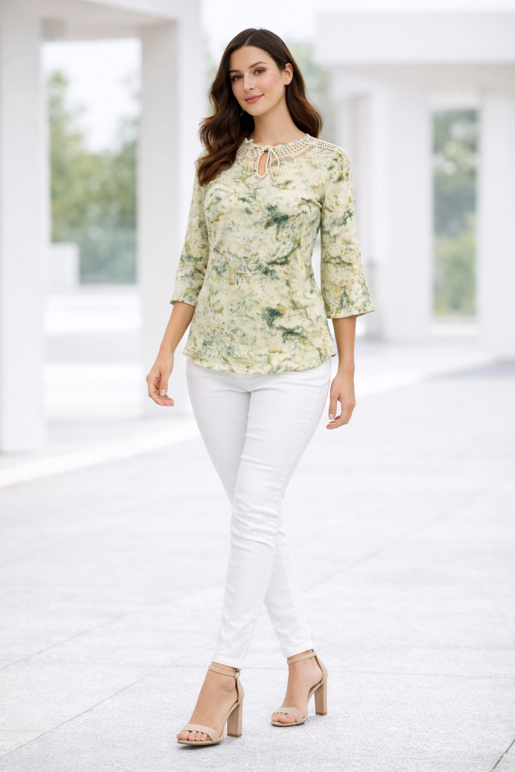 Elegant olive marble print stretch cotton top designed for comfortable everyday casual styling.