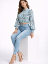 Sky Blue Floral Ruffle Crop Top