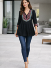 This elegant georgette blouse pairs beautifully with jeans, skirts, or tailored trousers for stylish everyday outfits, office wear, or casual evening styling.