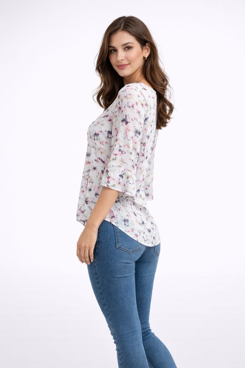 White Floral Print Georgette Casual Top