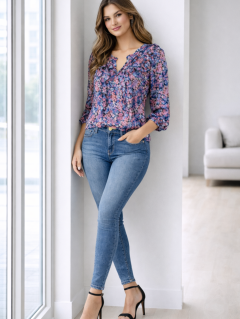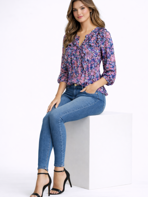 • Sleeves: 3/4 puff sleeves with cuff