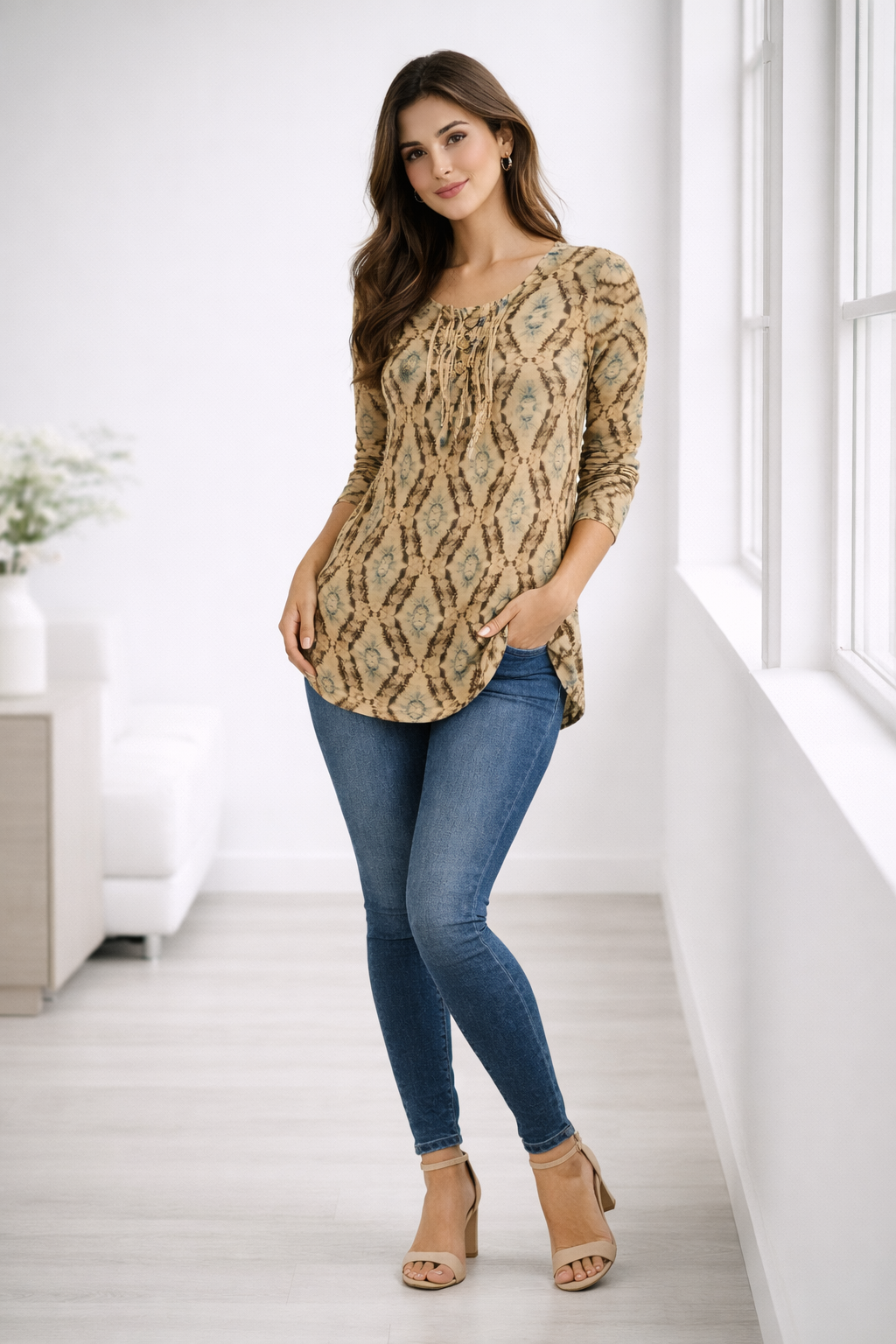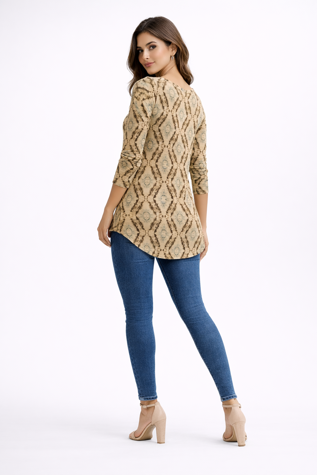 Women’s Beige Printed Stretchable Cotton Tunic Top