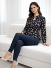 Add effortless elegance to your wardrobe with this black leaf print chiffon women top designed for modern styling. Crafted with a soft and breathable fabric, this top offers a lightweight feel that keeps you comfortable throughout the day. The delicate all-over leaf pattern enhances its feminine charm, making it a perfect choice for stylish women fashion.