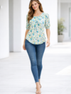 Be the first to review “Women’s Blue Floral Print Stretchable Cotton Casual Top”