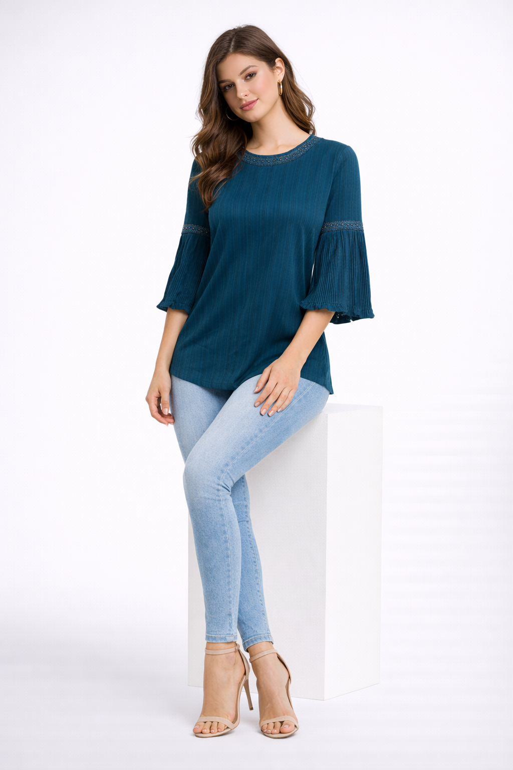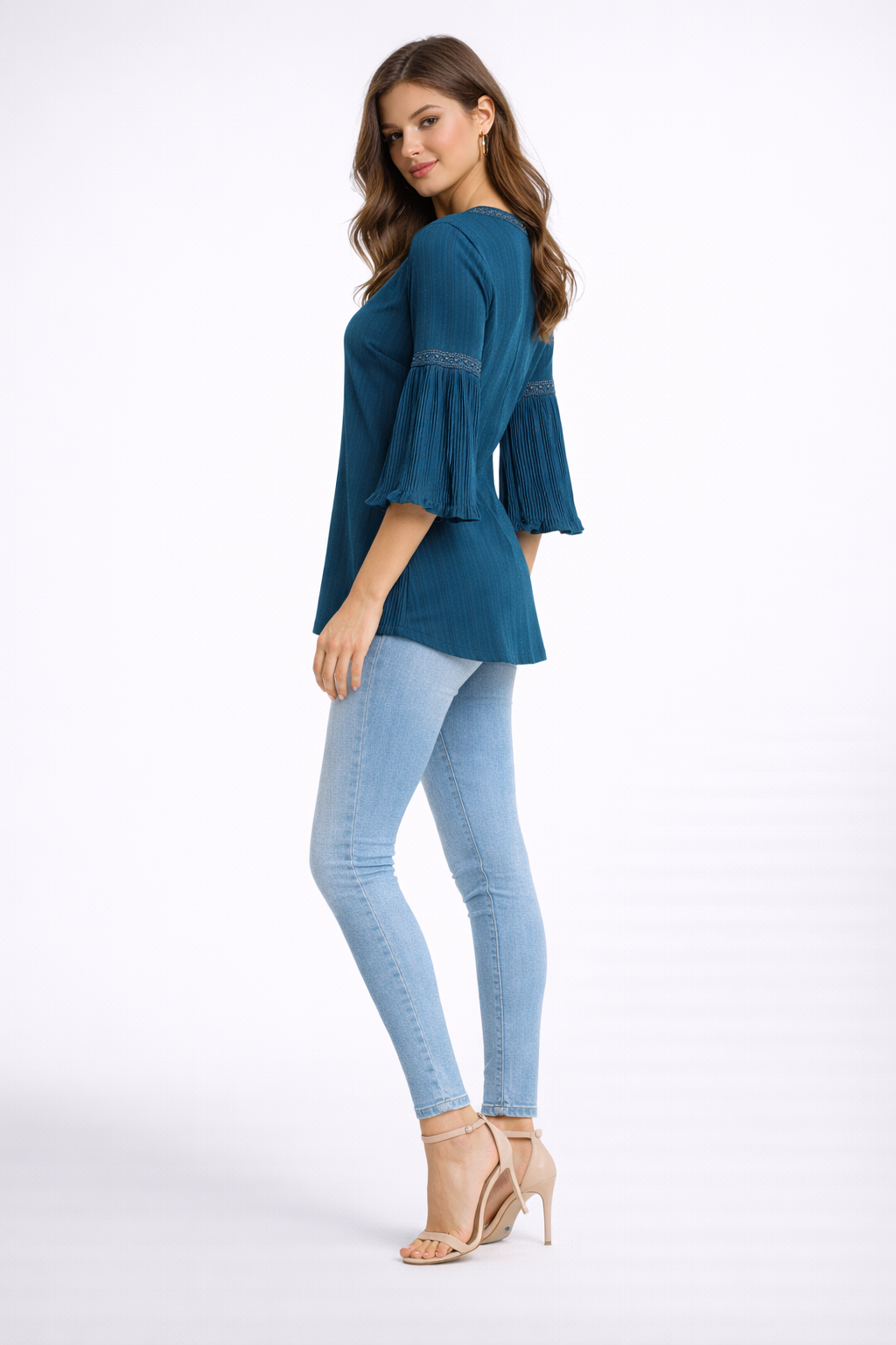 • Sleeves: 3/4th Pleated Bell Sleeves