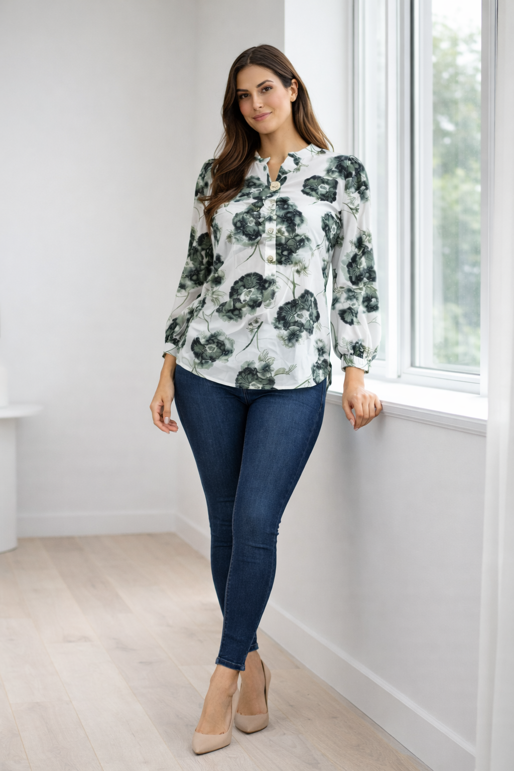 • Design: Floral Print with Button Placket