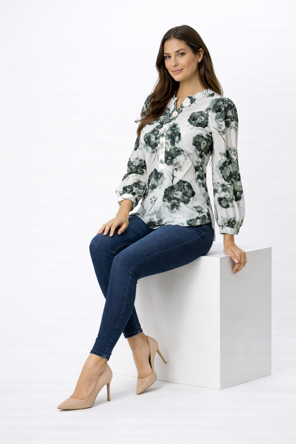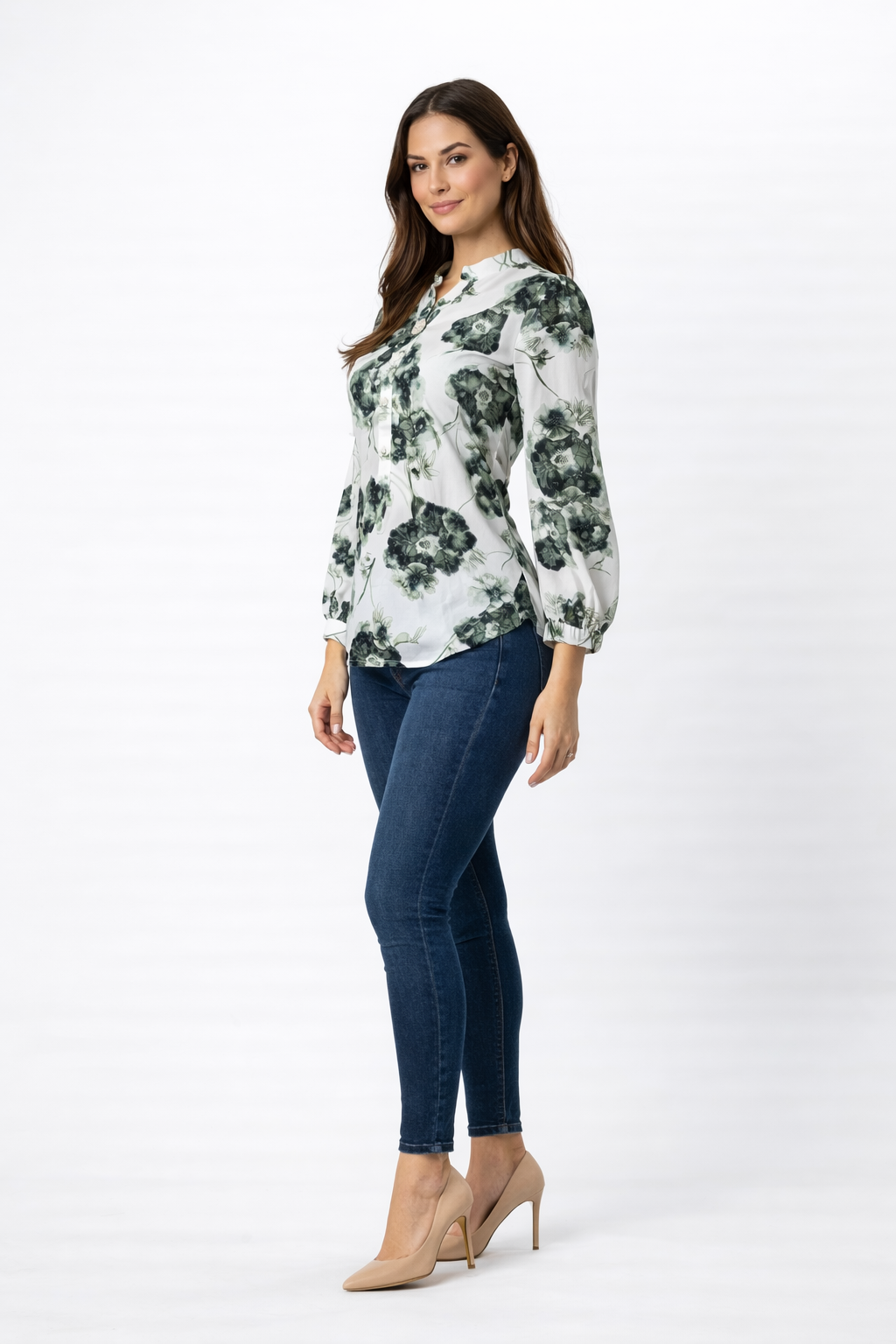 The floral print adds a vibrant touch, while the mandarin collar and button detailing enhance its refined look. Ideal for casual wear and office wear.