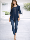- Sleeves: 3/4th Flared Sleeves with Lace Detail