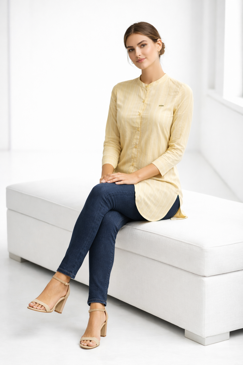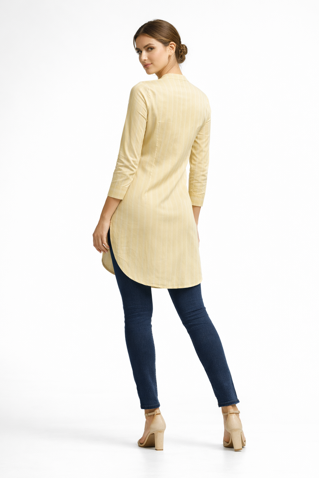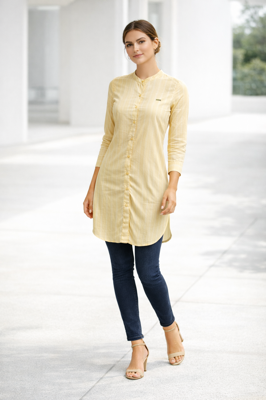 Elegant cotton women tunic with vertical stripes and modern design. Perfect for casual wear, office wear, breathable comfort, and stylish women fashion.