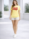 This stylish women fashion T-shirt is designed for comfort and everyday styling. The breathable cotton fabric keeps you comfortable while the bold typography graphic adds a trendy and youthful vibe to your casual wardrobe.